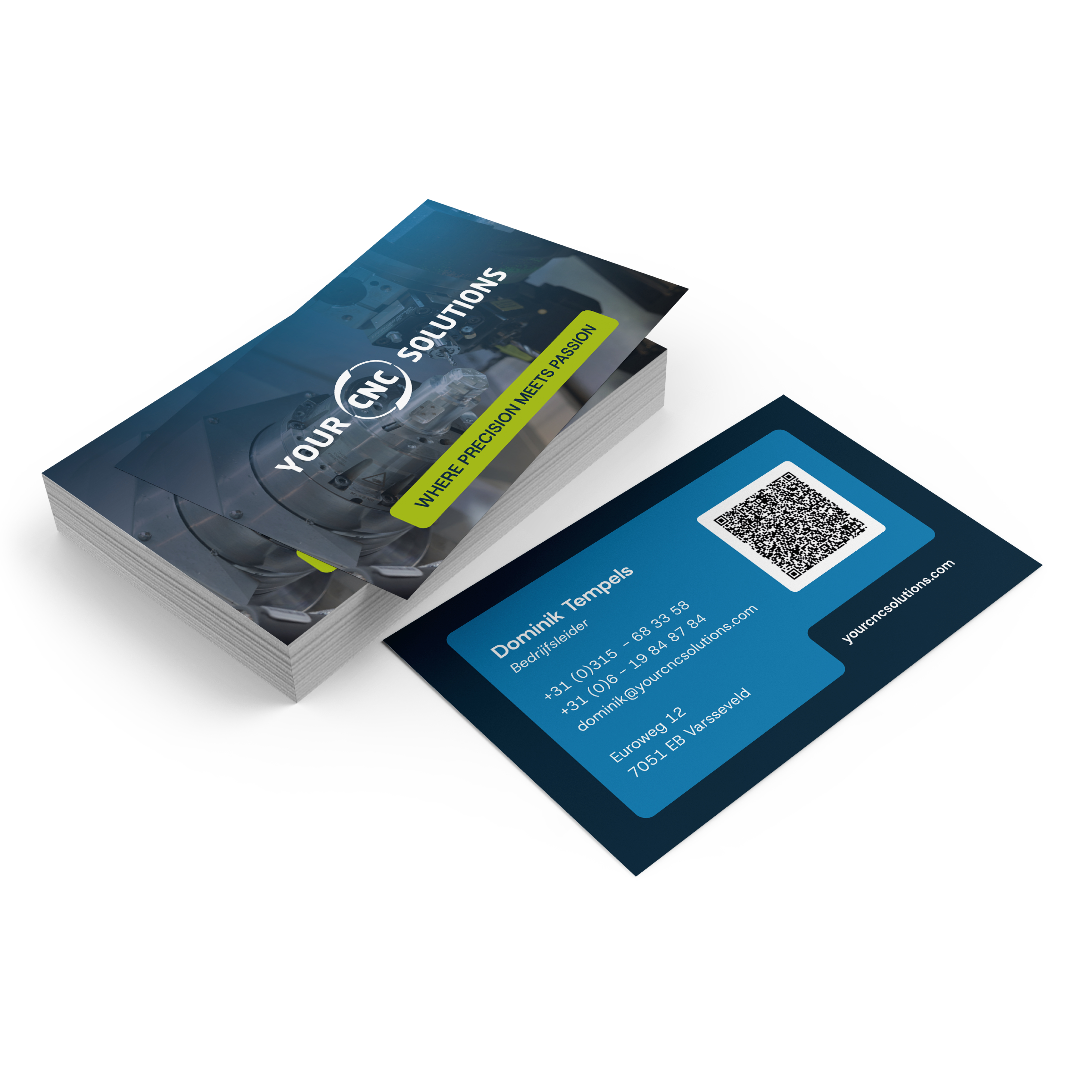 Vanuit het Your CNC Solutions team zelf werd de pay-off 'Where precision meets passion' bedacht. Purple Cow Marketing ontwikkelde een compleet nieuwe website en visitekaartjes rondom deze pay-off.